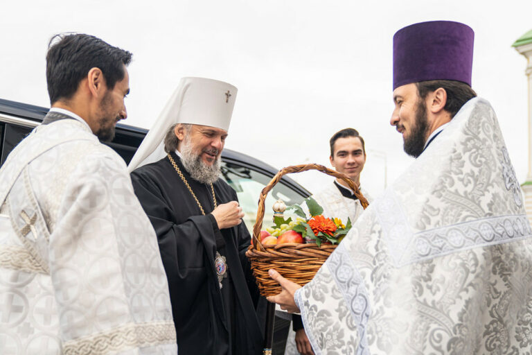 «По заамвонной молитве архиерей возглавил крестный ход вокруг собора. По случаю праздника Преображения митрополит Амвросий освятил плоды нового урожая — виноград, яблоки и другие дары земли, принесенные в храм богомольцами»,