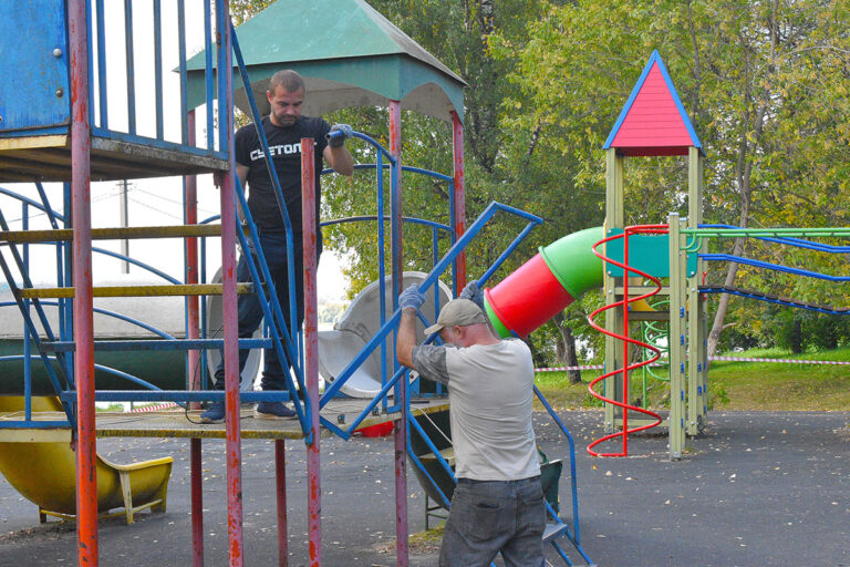 Сейчас там уже демонтирую устаревшие игровые элементы, после чего планируется уложить новое покрытие с использованием современной резиновой крошки и установить современный детский комплекс. Новая детская площадка будет состоять из трёх игровых зон. Это будет детский замок «Солнечный город», двухсекционные качели, а также игровой комплекс «Корабль».