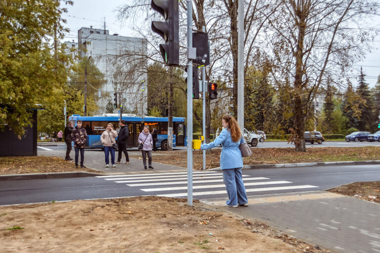 Кроме того, на новой дороге-дублере устроен пешеходный переход с вызывной кнопкой светофора. Это сделает безопасным переход через проезжую часть при движении со стороны гипермаркета к остановке «Октябрьский проспект» и в обратном направлении. Также на новой дороге уже оборудовано искусственное освещение.