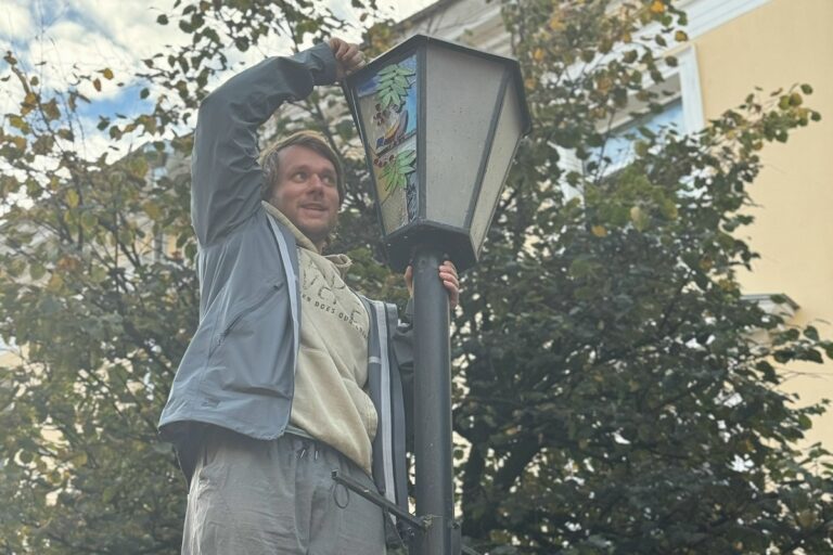 Житель города Артур Маковский рассказал, что установил витраж в один из фонарей на Трёхсвятской улице. К слову, его витражи появляются и в разных других частях города. По словам автора, он давно хотел воплотить эту идею в жизнь. Первым «художественным» фонарём стал тот, что установлен напротив центра современной культуры «Рельсы».