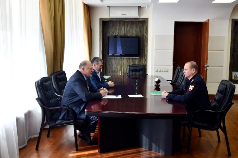 Председатель Законодательного Собрания Тверской области Сергей Голубев и его заместитель, председатель постоянного комитета по государственному устройству и местному самоуправлению Александр Клиновский провели рабочую встречу с начальником Управления Федеральной службы войск национальной гвардии Российской Федерации по Тверской области полковником полиции Дмитрием Сурковым.