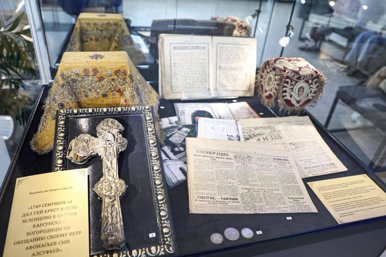 Экспозиция приурочена к 25-летию канонизации новомучеников на Поместном Соборе, 100-летию блаженной кончины святителя Тихона, Патриарха Московского и всея России.
