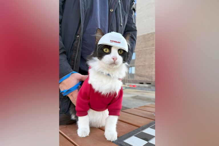 История кота началась ещё летом – на стройке девелопера «Новый город» обнаружили чёрно-белого красавца. Бездомный пушистый, видимо, решил, что надо брать судьбу в свои лапы и строить себе дом самостоятельно.