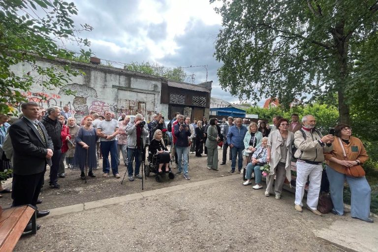 Право открыть мемориальную доску предоставили Евгению Пичуеву, Александру Сонису и Михаилу Калинкину.