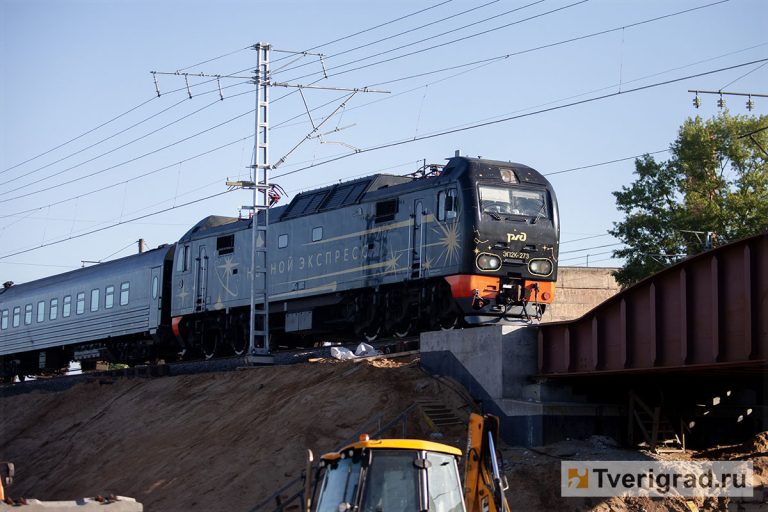 Утром 22 мая поезда, которые следуют через Тверь, поехали по новому путепроводу на Комсомольской площади — по временной металлической конструкции, которая будет служить для движения составов до тех пор, пока не будет возведено новое капитальное сооружение.