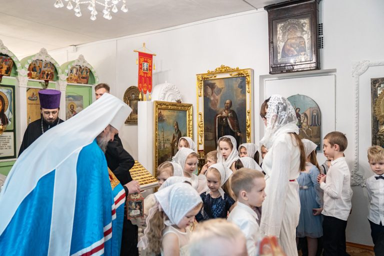 «В домовой церкви святой Анны Кашинской при детском саде клиросный хор и хор старшей (подготовительной) группы пропели тропарь праздника Рождества Христова и рождественскую колядку. Архипастырь поздравил детей, воспитателей и сотрудников детского сада с праздником Рождества Христова и вручил им подарки»,