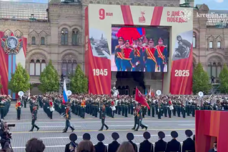 На Красной площади начался парад в ознаменование 80-й годовщины Победы в Великой Отечественной войне. Владимир Путин вместе с Председателем КНР Си Цзиньпином занял место на центральной трибуне. 29 глав делегаций иностранных государств присутствуют вместе с Владимиром Путиным на военном параде на Красной площади. В параде принимают участие более 11,5 тысячи военнослужащих, полторы тысячи из которых – участники специальной военной операции, сообщает официальный телеграм-канал Кремля.