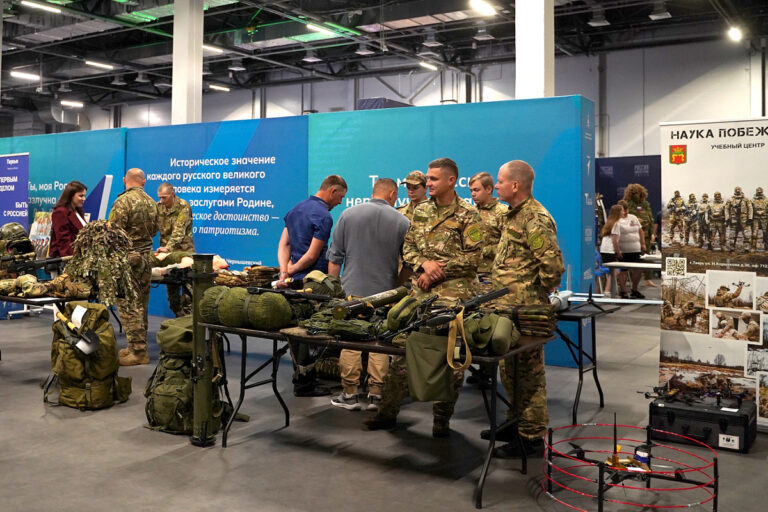 На Слёте развёрнута стендовая выставка гуманитарных штабов и проектов по оказанию помощи участникам СВО, их семьям, мирному населению.
