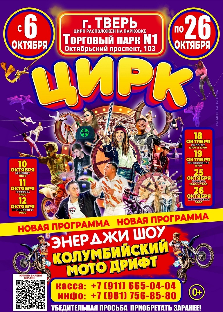 С премьерой в Твери — цирк-шапито братьев Мансуровых! От «Энерджи шоу» и его главной новинки — колумбийского мотодрифта захватывает дух.