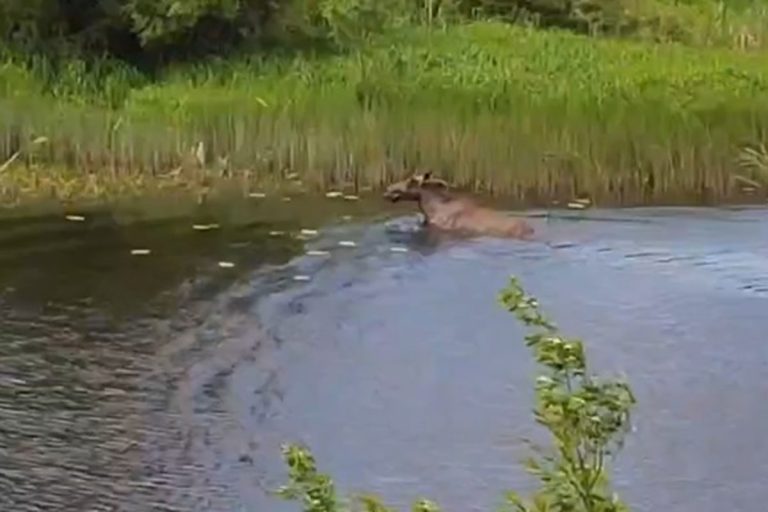 В соцсетях появилось видео, как лось принимает водные процедуры. Происходит это в микрорайоне Первомайском Пролетарского района.