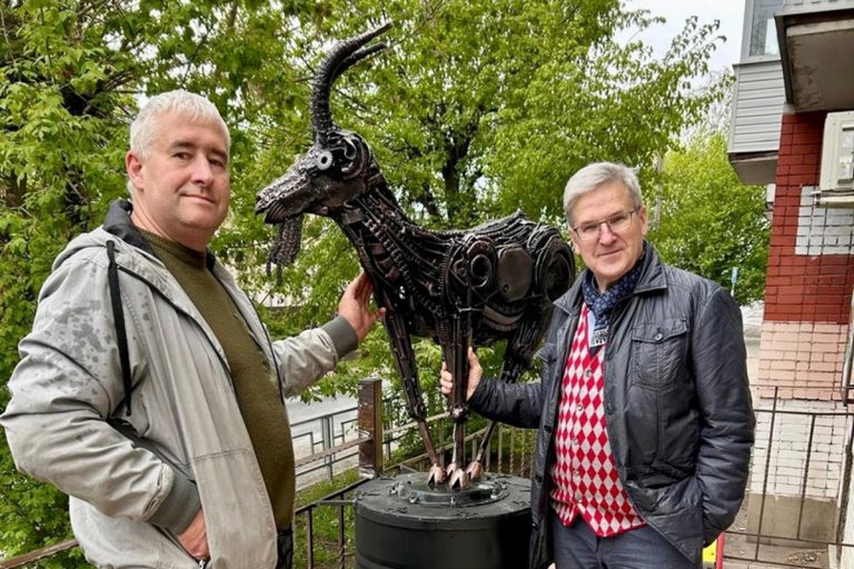 В Твери установили скульптуру козла из металлолома