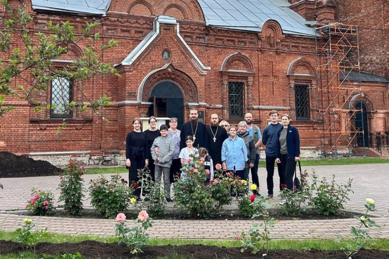 В честь трехлетия молодежного движения «Источник» его участники на территории Владимирской церкви Твери высадили 60 цветущих розовых кустов и несколько янтарных туй. Об этом сообщает II Тверское благочиние.