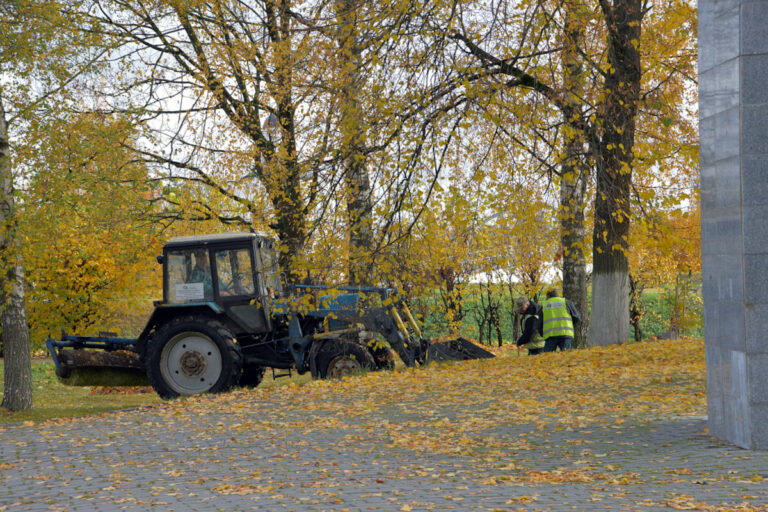 Сейчас в областном центре убирают и увозят опавшие листья с общественных территорий, а также приводят в порядок зелёные насаждения в скверах и парках.