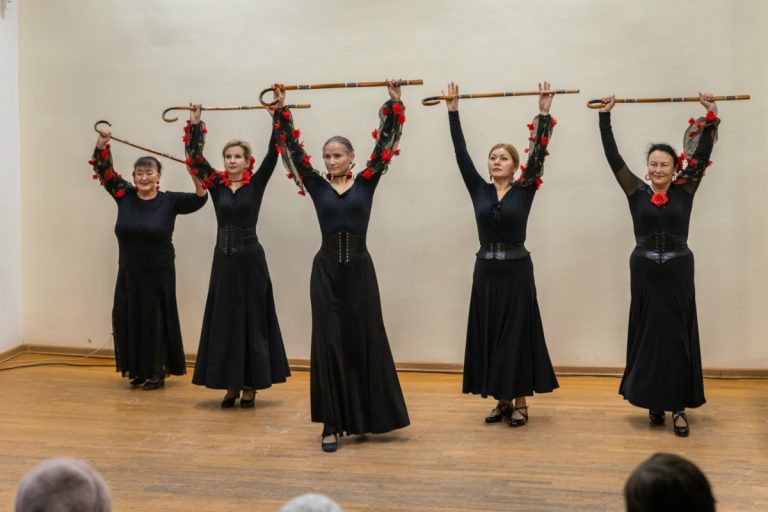 «В программу вошли номера с веерами, бастонами, шляпами и мантонами – каждый со своим настроением и характером. Открыли вечер танцы в честь 80-летия Победы и 165-летия со дня основания Горьковки. Единственной женщине-академику химических наук, нашей землячке Александре Васильевне Новоселовой был посвящен исполненный танцорами ирландский степ. А ансамбль кастаньет исполнил композиции под музыку Г. Генделя и П. Чайковского»,