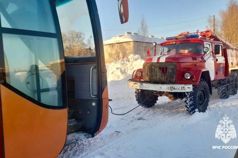 22 февраля в Калязине туристический автобус застрял в снегу. Как сообщили в ГУ МЧС России по Тверской области, на помощь пришли сотрудники ПСЧ-32. С помощью пожарной машины автобус вызволили из снежной ловушки.