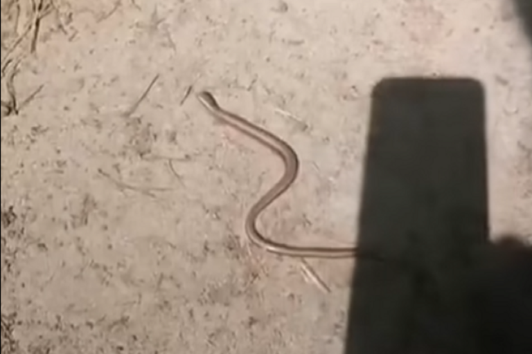На лесной тропинке, расположенной недалеко от деревень Андрианово и Черногубово, они встретили редкую рептилию.