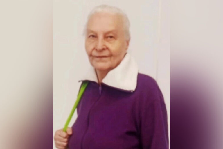 Приметы: рост 165 см, худощавого телосложения, волосы седые, глаза голубые. Была одета (как на фото): кофта фиолетовая с белым воротником на молнии, футболка светло-фиолетовая, брюки синие, мокасины черные.