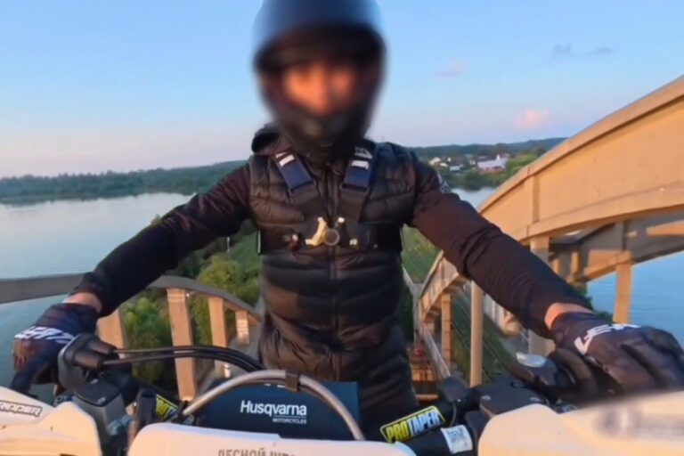 В Калязине байкер-экстремал совершил крайне опасный и необдуманный поступок: он проехал по арке Горбатого моста на мотоцикле, снимая это на видео. При этом мотоциклист, вероятнее всего, совершено не понимал, что подвергает серьёзной опасности себя и окружающих.