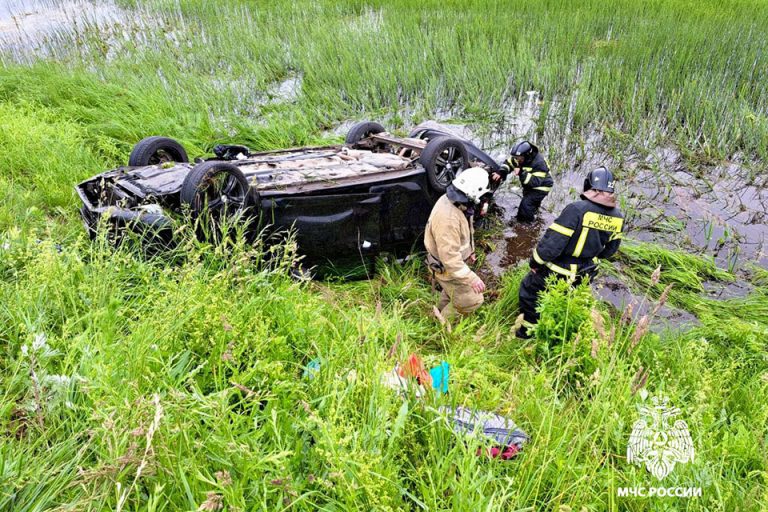 По предварительным данным, водитель автомобиля Volkswagen неправильно выбрал скорость движения и допусти съезд в кювет, где было придорожное болото. Там машина перевернулась.
