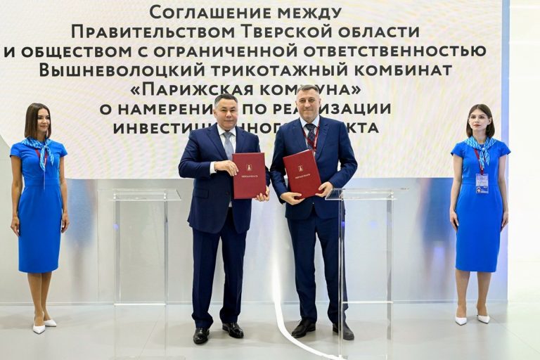19 июня на Петербургском международном экономическом форуме между Правительством Тверской области и Вышневолоцким трикотажным комбинатом «Парижская коммуна» подписано соглашение о намерениях по реализации инвестиционного проекта, направленного на модернизацию одного из старейших отечественных предприятий текстильной промышленности. Подписи под документом поставили Губернатор Игорь Руденя и Сергей Панкин, представитель ООО Вышневолоцкий трикотажный комбинат «Парижская коммуна».