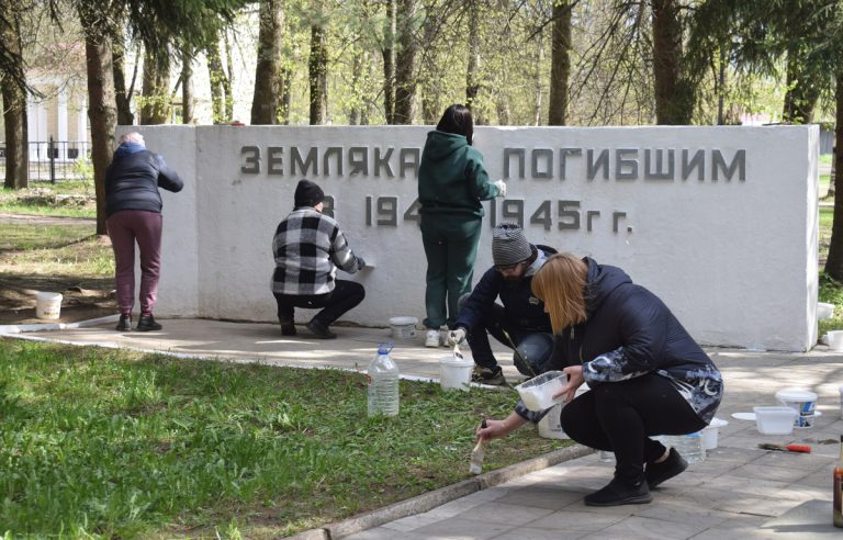 В Оленино работники культуры и активисты местного отделения Российского военно-исторического общества навели порядок на площади Победы – убрали листву и мусор, покрасили бордюры и элементы памятника.