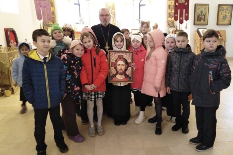 Ученики средней школы №3 в Конаково вместе с учителем ИЗО Татьяной Малышевой посетили церковь в честь сорока мучеников Севастийских. В храме была освящена икона Христа Спасителя, написанная преподавателем для отправки в зону СВО.