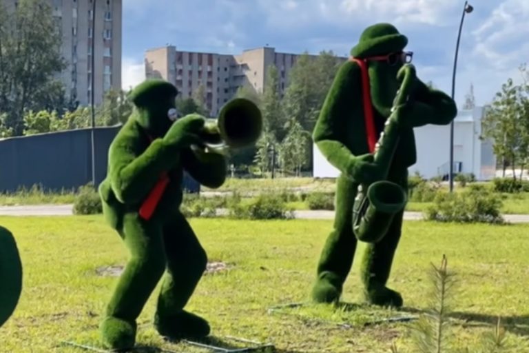 В Удомле в сквере имени Венецианова в апреле 2025 года установили парковые скульптуры — зелёных музыкантов, медведей и лошадь. И вот сейчас их решили «оживить».