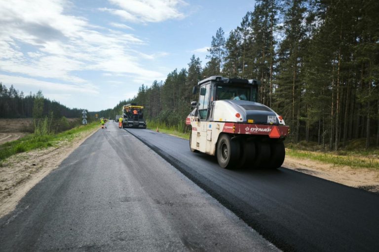 Сейчас подрядчик уже кладёт асфальтобетонное покрытие на участке, стоящем в плане на следующий год. Также на объекте укрепляют обочины и устанавливают дорожные знаки.