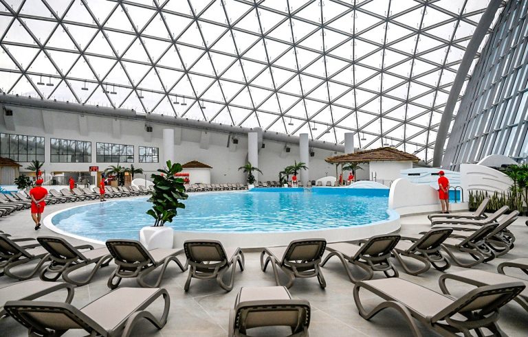 В нём расположен современный водный парк с 17 аттракционами и горками, «ленивой рекой» длиной 260 метров и 18 бассейнами.