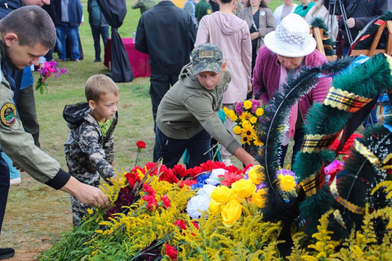 21 августа в деревне Брод Западнодвинского округа состоялась церемония перезахоронения останков бойцов, погибших в годы Великой Отечественной войны. Во время поисковых работ, которые проводились в этом году на территории муниципалитета, были найдены останки шести погибших защитников Отечества.