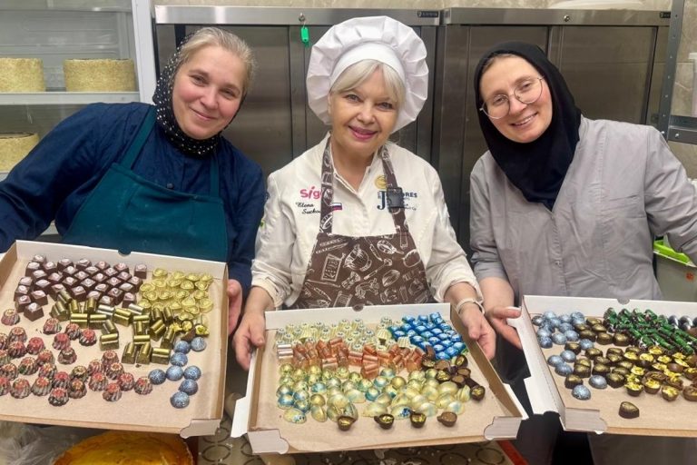 «На протяжении многих лет Елена Михайловна приезжает в монастырь и щедро делится своими знаниями, находками и идеями. В этот раз знаменитый кондитер приехала научить сестер новым рецептам. Под чутким руководством мастера сестры научились изготавливать запеченные сырные чизкейки, украшенные снежинками, лесными ягодами и зеленью; создавать необыкновенно вкусный десерт Чешский рулет; делать конфеты ручной работы из натурального шоколада с ягодными, кофейными и апельсиновыми начинками за счет технологии темперирования черного и белого шоколада»,