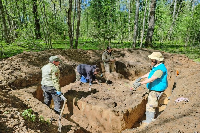 В ходе поисковой экспедиции в одном из санитарных захоронений обнаружены останки четырнадцати советских солдат, погибших в годы Великой Отечественной войны. Вместе с останками найдены три солдатских медальона-ладанки образца 1925 года, которые будут отправлены на исследование в лабораторию «Солдатский медальон». Об этом сообщили поисковики «Витязя».