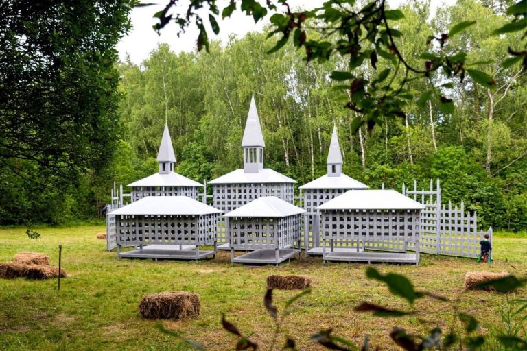 «Из арт-парка Николо-Ленивец, после завершения фестиваля «Арххстояние-2025» к нам переехал интересный арт-объект, спроектированный нашим архитектором Михаилом Беловым, под название «Обитель». Мы решили этой инсталляция найти прикладное предназначение и превратить в небольшой контактный зоопарк»,
