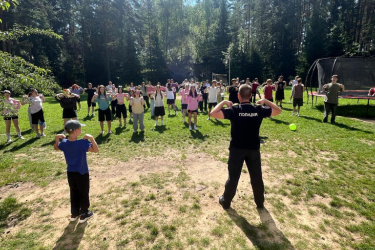 Сотрудники тверской полиции приняли участие во Всероссийской акции МВД России «Зарядка со стражем порядка». В детском лагере «Радуга» полицейский патрульно-постовой службы старший сержант полиции Андрей Мельников провел зарядку для школьников.