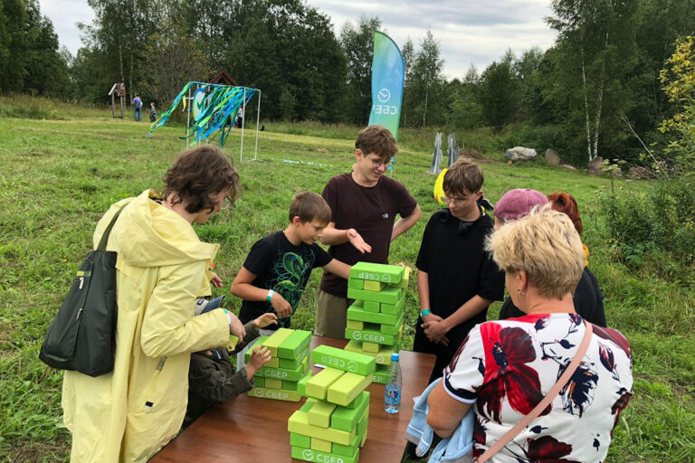 На площадке Сбера для гостей фестиваля подготовили различные активности для всей семьи: для любителей головоломок работала зона с настольными играми и гигантской дженгой, для тех, кто выбрал активный отдых, – командные эстафеты. Самые юные участники фестиваля проявили свои таланты в творчестве: декорировали деревянные фигурки и раскрашивали любимых героев из советских мультфильмов.