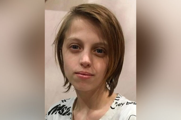 Приметы: рост 165 см, худощавого телосложения, волосы светлые, стрижка короткая, глаза голубые. Была одета: футболка черно-белая с рисунками, кофта черная с рисунками и цепочками, джинсы, кроссовки малинового цвета.