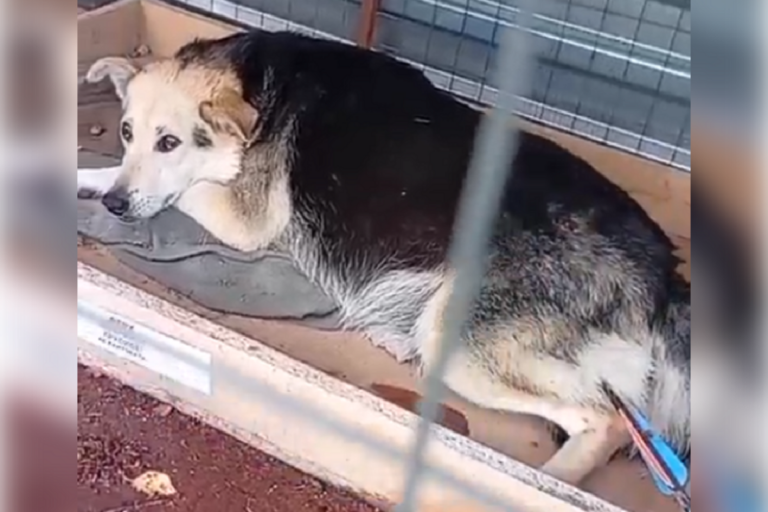 Стрела пробила бедро и вошла глубоко в брюшную полость. По словам зоозащитников, животное кормящее, его срочно везут в клинику Твери для экстренной операции. Состояние собаки остаётся критическим.