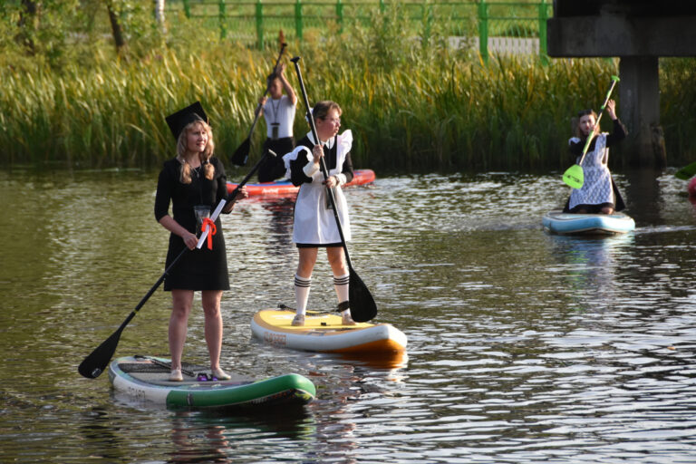 В Тверской области устроили заплыв на сапбордах в школьной форме