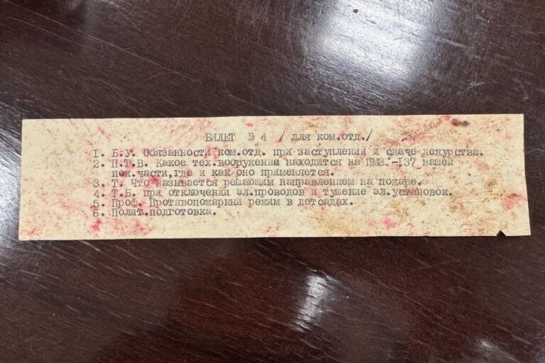 В Осташковском округе на полу в здании Каланчи был случайно обнаружен экзаменационный билет №4, по которому пожарные раньше сдавали экзамен.