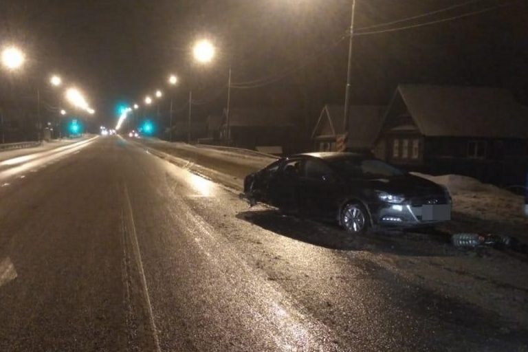 В Тверской области водитель Hyundai, уходя от столкновения, протаранил фонарный столб