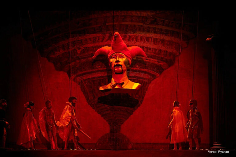 Как указывают в пресс-материале, режиссёр Руслан Кудашов выстроил сложную структуру, сочетающую элементы масок народной драмы с философскими размышлениями о природе искусства и действительности. Зрители видят на сцене «театр в театре».