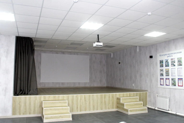 — Во время ремонта были заменены балки перекрытия и усилена конструкция здания, что позволило убрать колонны из зрительного зала и улучшить обзор. Также были обновлены системы отопления и электроснабжения. На сцене установлен подиум для аппаратуры, а для артистов оборудованы гримёрки и раздевалки. Для зрителей установлены новые ряды удобных кресел, на окнах появились жалюзи, а на стенах — информационные стенды. Сцена теперь отделена от зрительного зала занавесом, — рассказали в УФСИН.