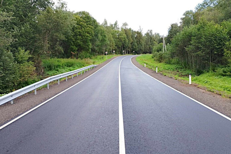 Также там укрепили обочины. В деревне Молозвино обустроили искусственные неровности. Кроме того, на дороге установили знаки, барьерное ограждение и нанесли дорожную разметку термопластиком.