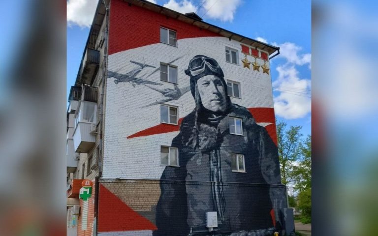 Во Ржеве на фасаде многоэтажного дома появился портрет летчика-героя