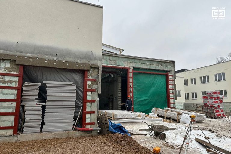 В административно-бытовом блоке здания цирка также продолжается устройство фасада и внутренняя отделка стен и перегородок.