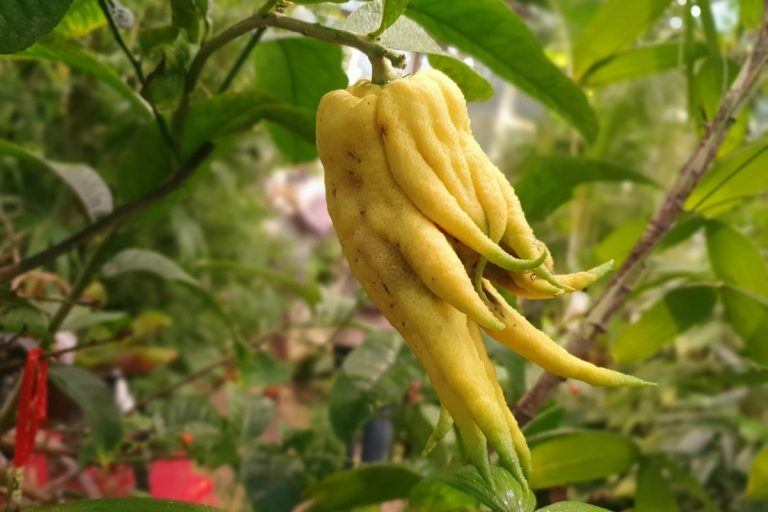 Это цитрон пальчатый (лат. Citrus medica var. sarcodactylis), более известный как «Рука Будды». Этот древний вид цитрусовых отличается необычной формой — плод разделён на несколько вытянутых долей, напоминающих человеческие пальцы.