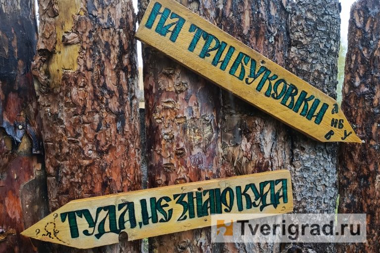 Подхожу к главным вратам, на входе меня встречают забавные указатели на сказочный манер, но с современной остротой.
