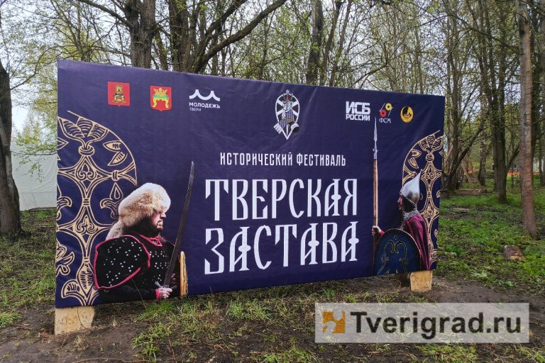 Впереди баннер фестиваля, успевший облететь почти все тверские соцсети.