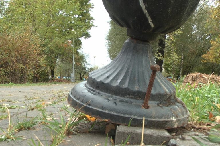 Группа молодых людей разгромила парк Победы. За собой они оставили разбитые фонари и расписанные контейнеры для мусора.